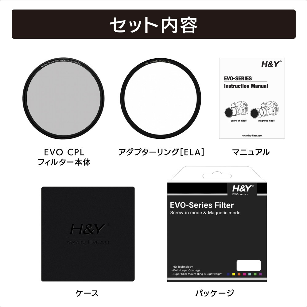 ■EVO-Series MRC Slim CPL Filter Kit(スリム CPL フィルターキット)は、ねじ込み式とマグネット式の両装着方式に対応したシステムです。