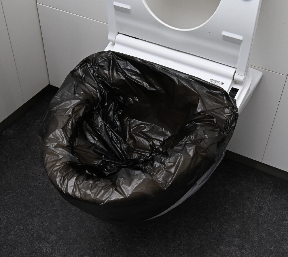 ●使用方法:便座カバーで便器を覆う→汚物袋をその上に覆う→用を足す→凝固剤を入れる→凝固剤が固まったら汚物袋の封をする→ゴミ袋に入れる→ゴミを捨てる