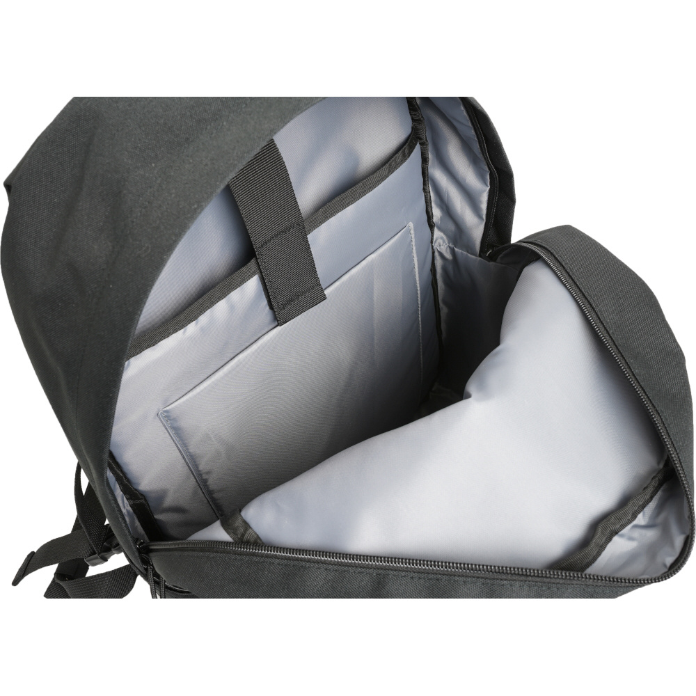 衝撃を緩和するウレタン入りのPCポケット。固定ベルトもついています。B4サイズのフラットなポケットにはタブレットも収納可能。