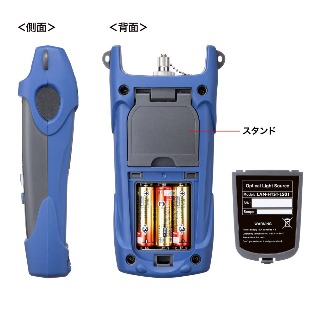 仕様3 [セット内容]光ファイバライトソース、FCコネクタ用アダプタ×1個、SCコネクタ用アダプタ×1個、収納ケース(ショルダーベルト付き)、単三乾電池(テスト用)×3本、取扱説明書・保証書