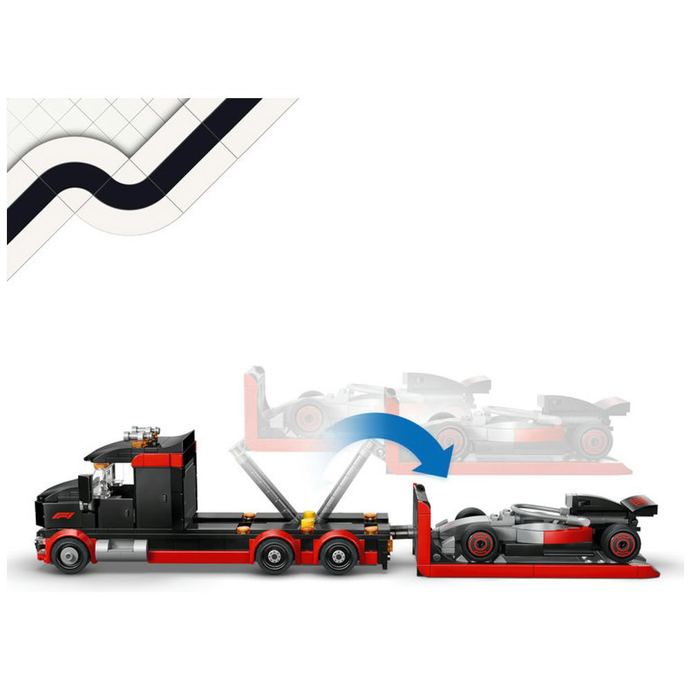 カッコいい車がスピード対決に挑むレースファンのお子さまを笑顔にするF1(R) ディスプレイ輸送トラックと Audi F1(R) レースカー(60493)。