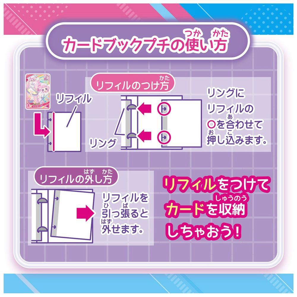 映画に登場するコーデを着たひまりとみつきがかわいい、スペシャルデザインのカード収納アイテム♪持ち運びに便利なサイズで、リフィルはワンタッチで簡単着脱できる!