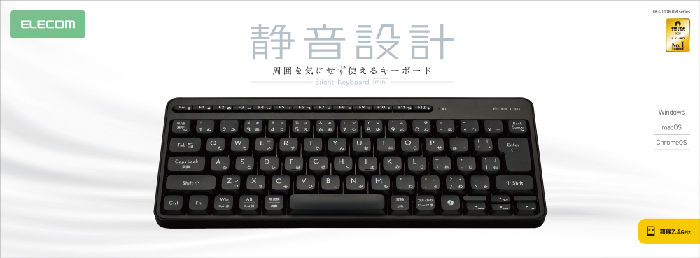 進化した静音設計!さまざまなOSと接続でき、音が気になる場所でも快適に作業できる無線2.4GHzミニキーボードです。