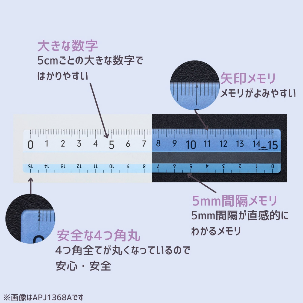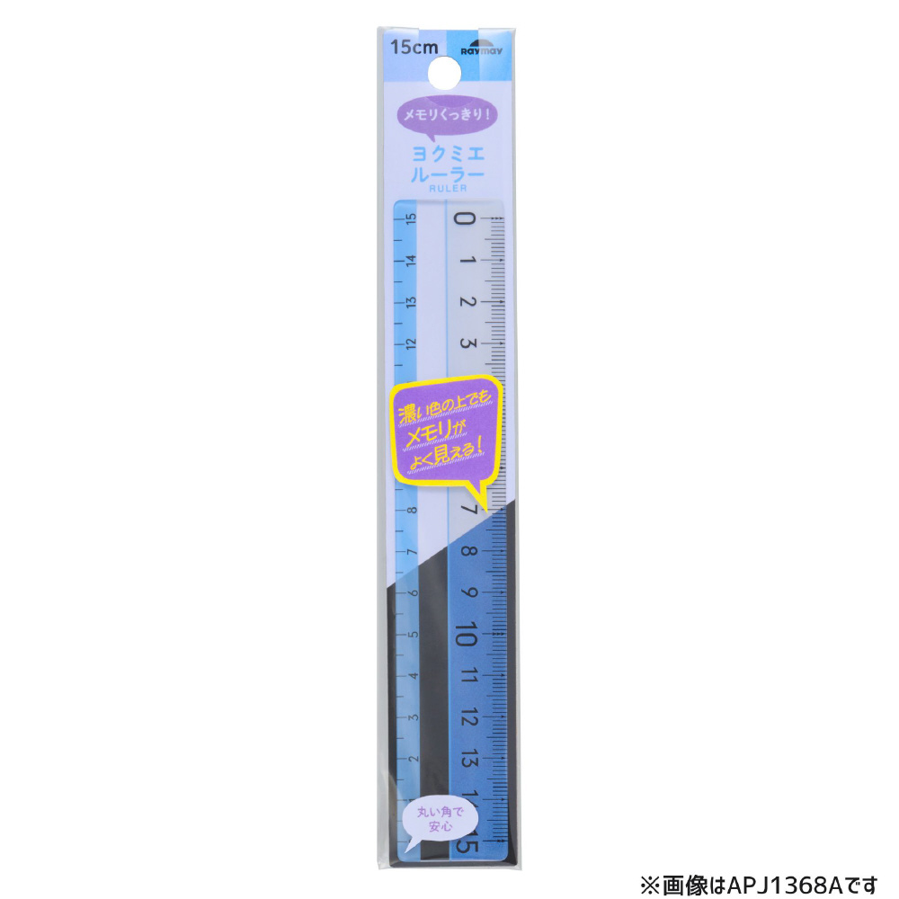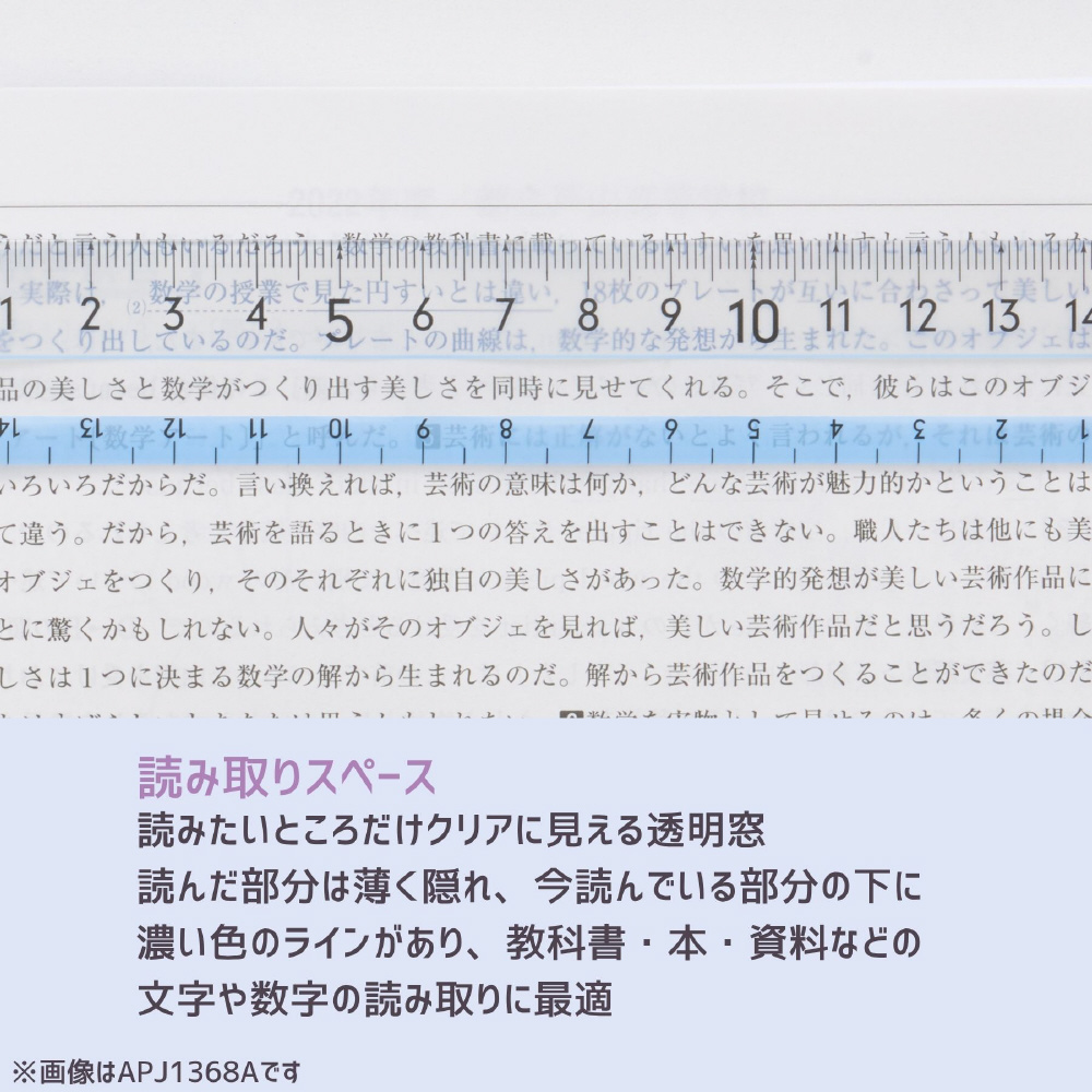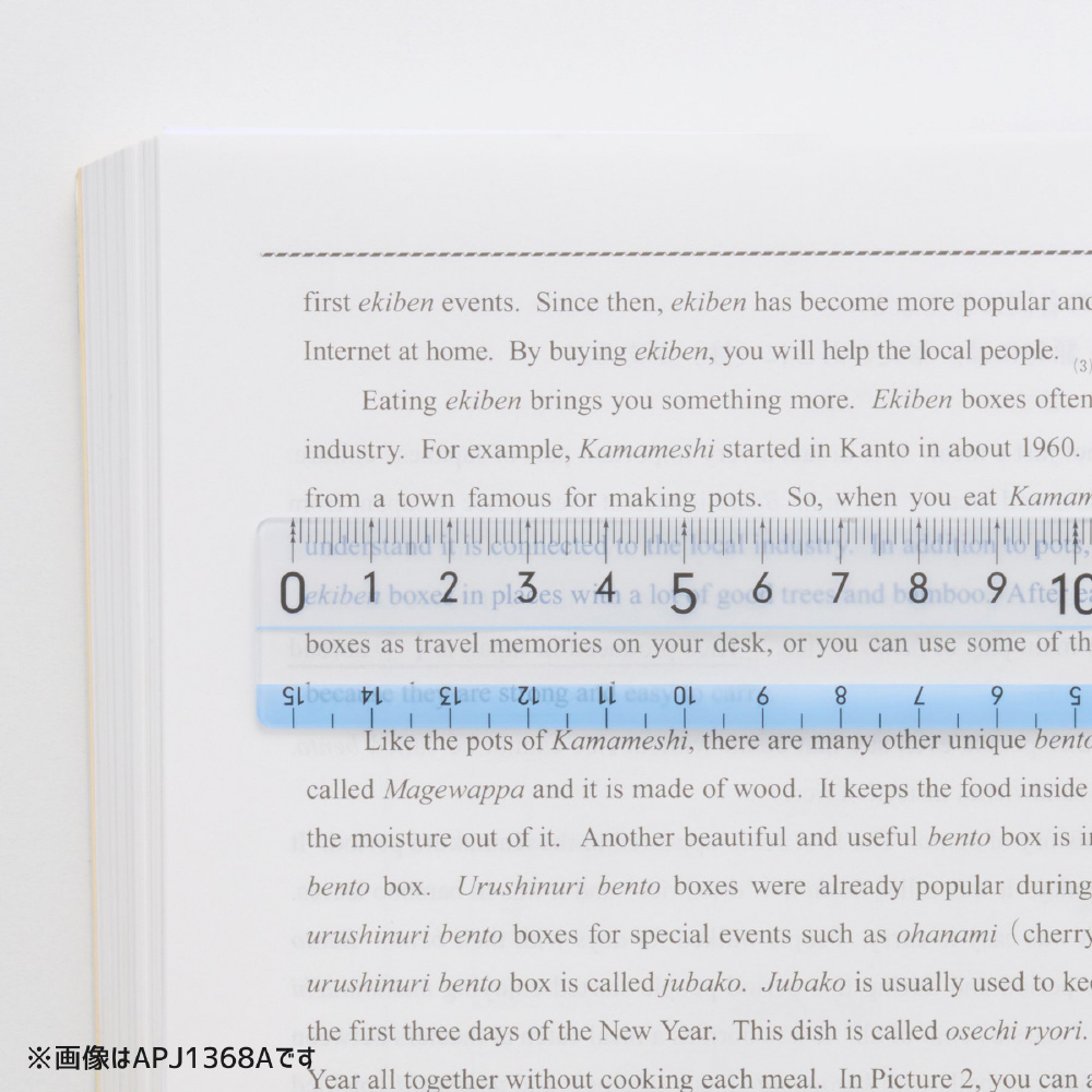 メモリの下に色がつくので、どんな色の上でもメモリがよく見える定規。