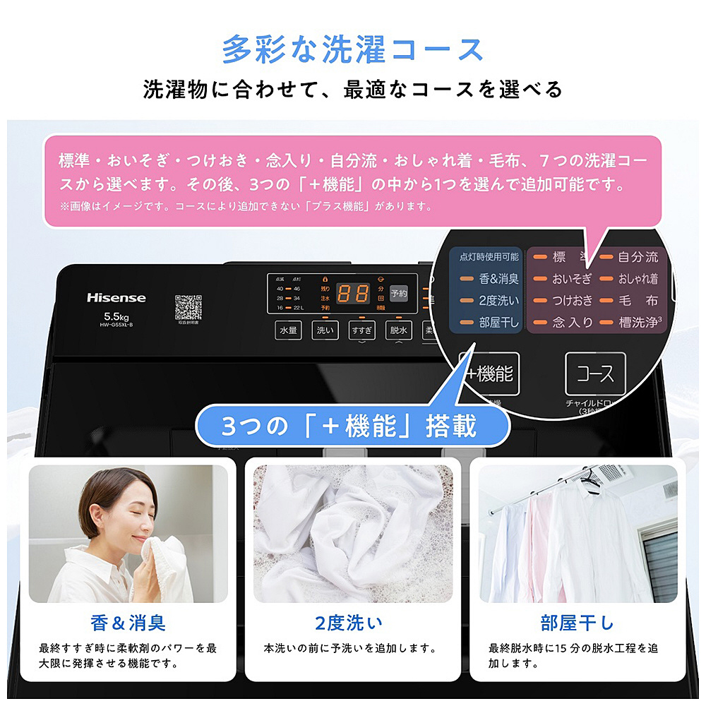標準/おいそぎ/つけおき/念入り/自分流/おしゃれ着/毛布/槽洗浄 +機能・香&消臭/2度洗い/部屋干し