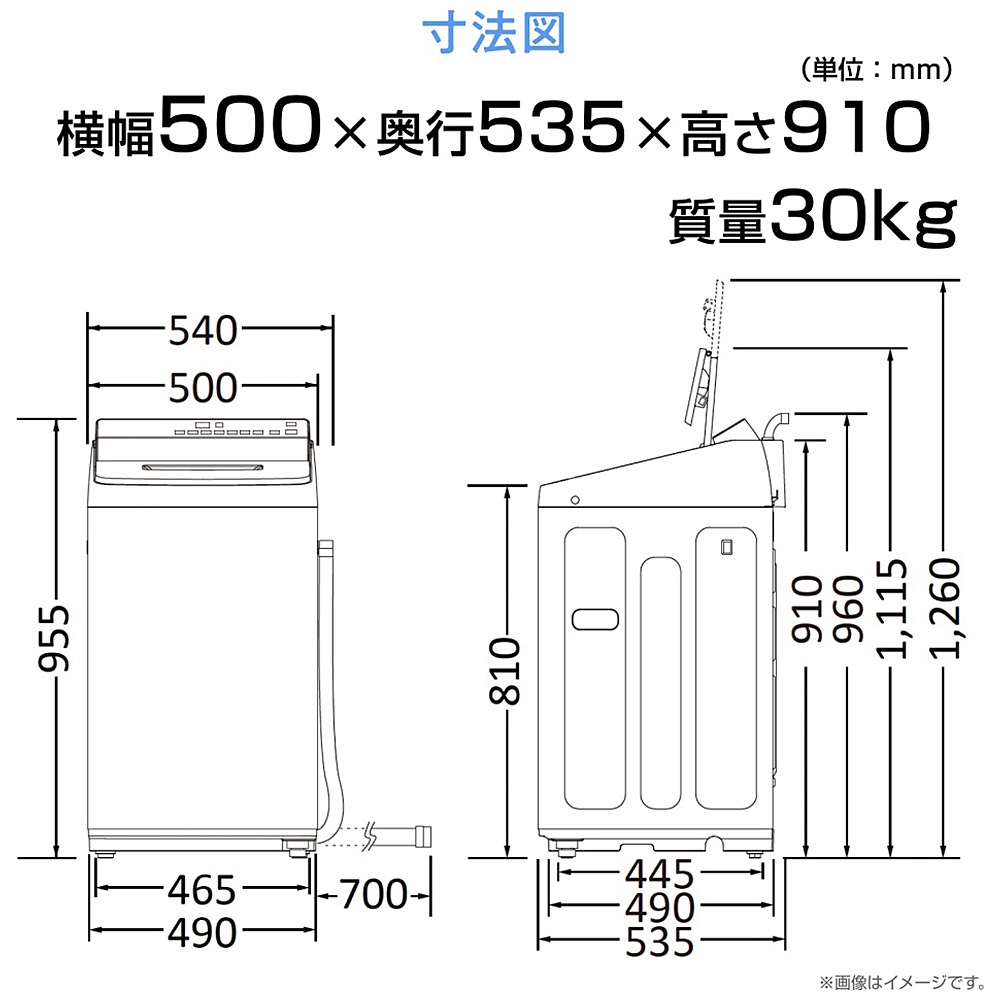 標準水位: 46〜16L 最短洗濯時間: 約14分(水位20L時) 予約タイマー: 1〜24時間(1時間単位) 排水方向: 左右、後、真下