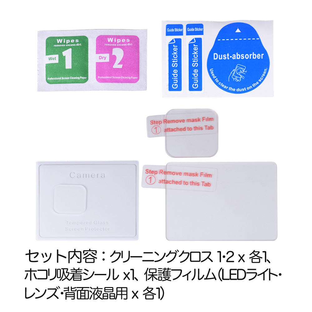 ・保護フィルム(レンズ/LEDライト/液晶スクリーン用) x各1