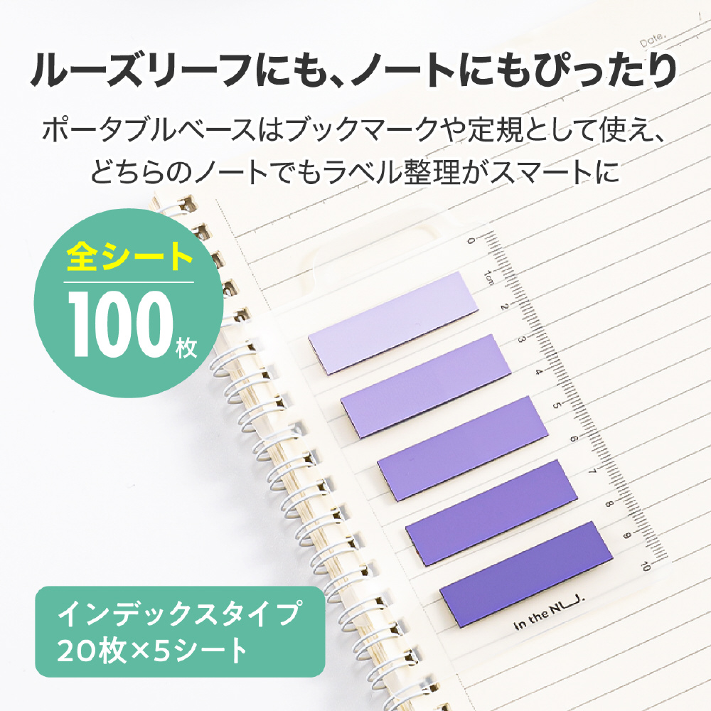 ポータブルベースはブックマークや定規として使え、どちらのノートでもラベル整理がスマートに。