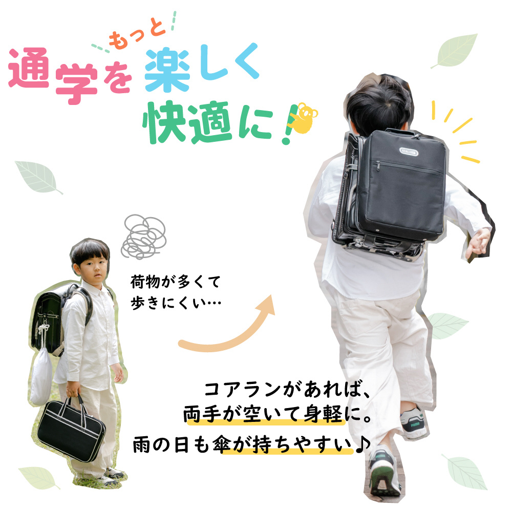 かぶせが短めのランドセルは、コアランの固定が難しい場合があります。