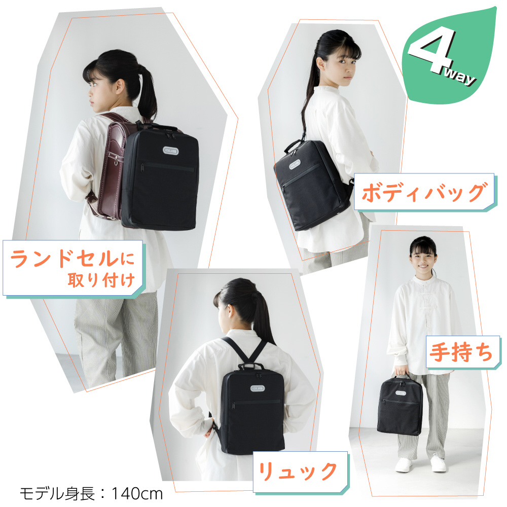 いろんな持ち方で、もっと楽しく、快適に。「通学時の荷物を減らしたい」との声に応えた補助バッグです。