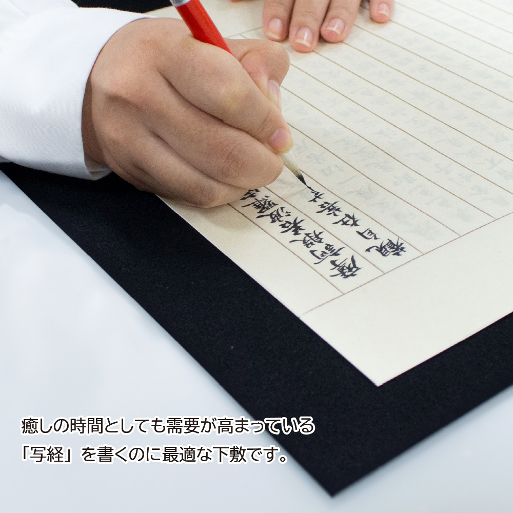 しなやかで、適度な柔らかさのある上質なウールフェルトです。写経用紙を置いた時にゆとりのあるサイズにしました。