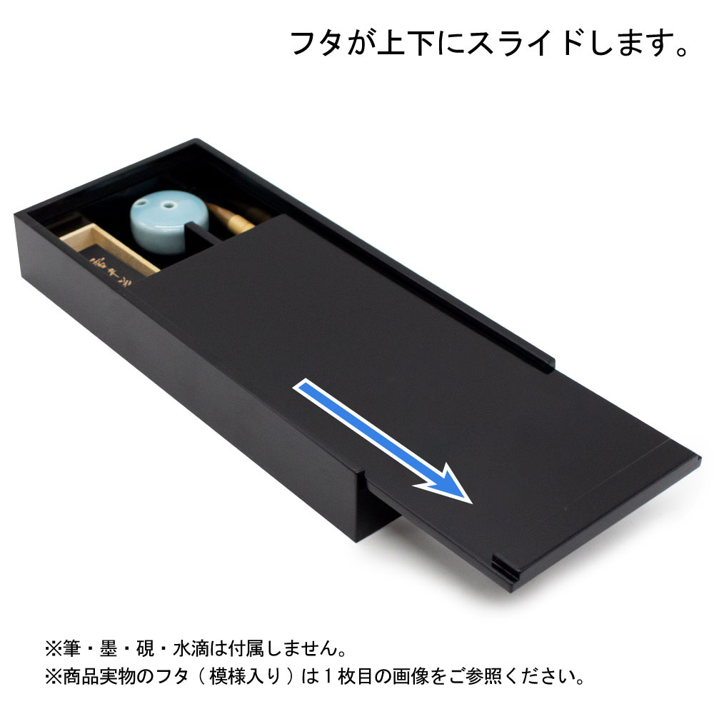 自宅でも外出先でもご愛用いただけるコンパクトな硯箱です。スライド式開閉。三五度硯収納用。