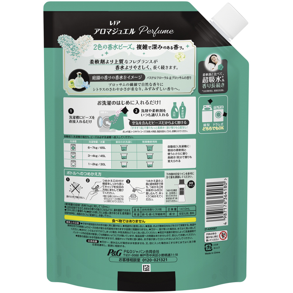 【ケース販売】レノアアロマジュエル パステルフローラル&ブロッサムの香り 詰替用超特大サイズ 1410ml×5
