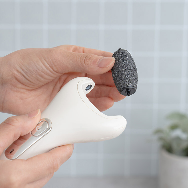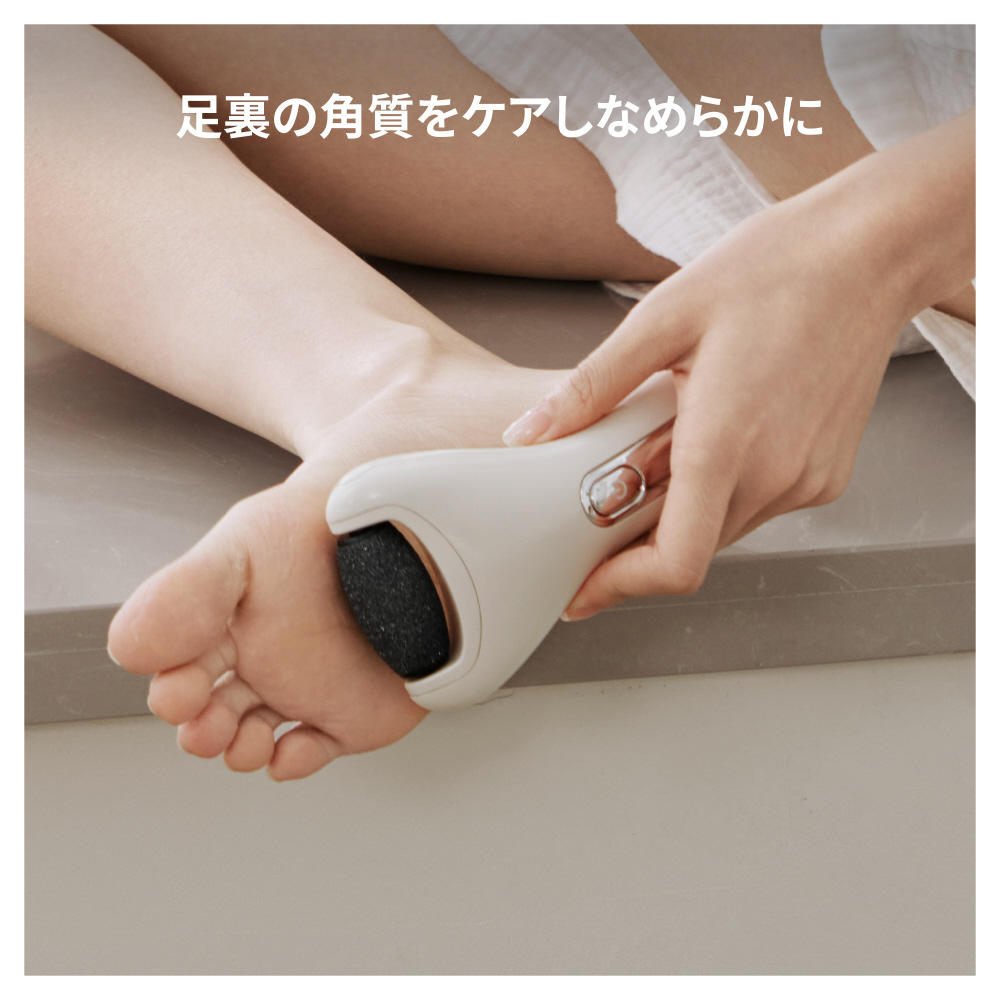 専用研磨ヘッドが足裏の古い角質をなめらかにケア。毎日の歩行で気になるゴワつきをソフトに除去し、ツルツルな素足へ導きます。
