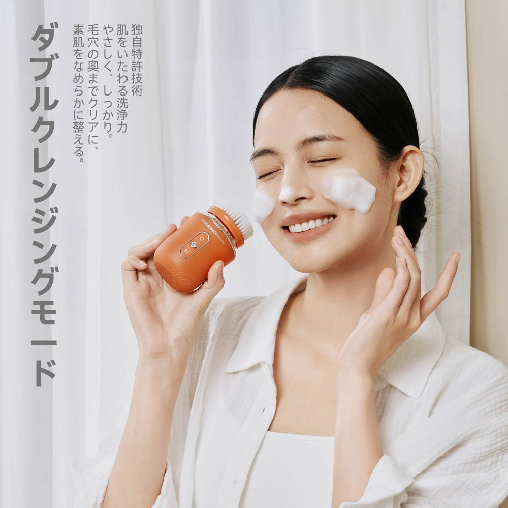 ダブルクレンジングモード独自特許技術 × 肌をいたわる洗浄力やさしく、しっかり。毛穴の奥までクリアに、素肌をなめらかに整える。