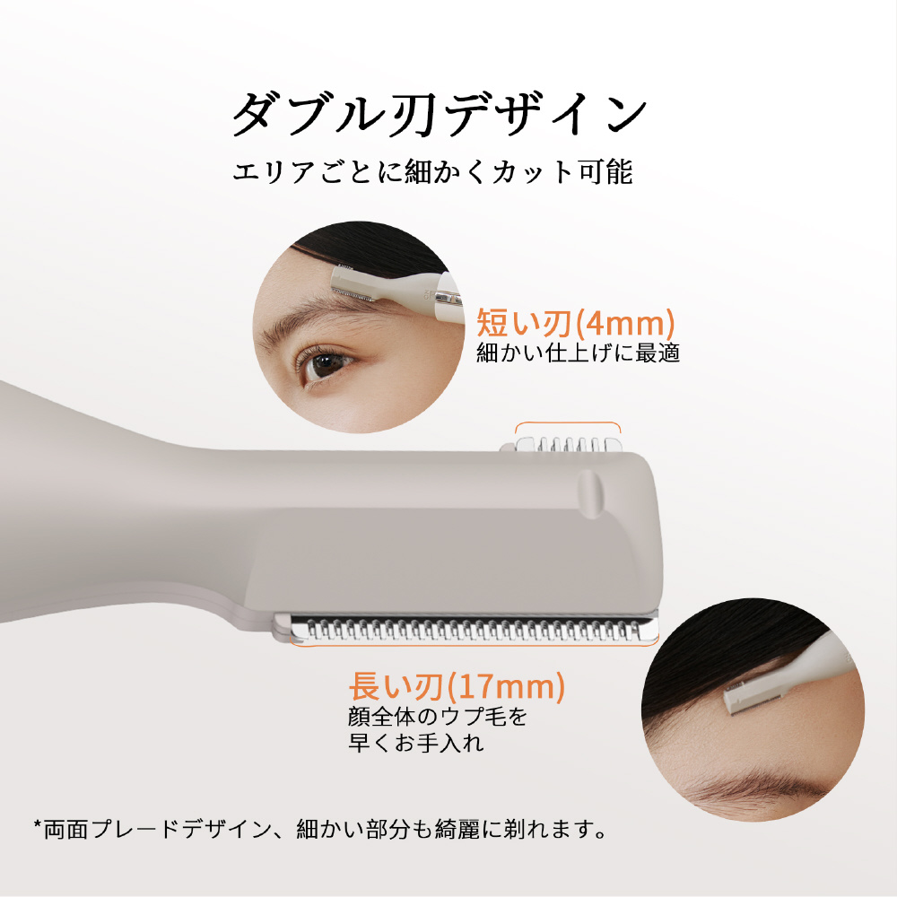 長い刃で眉全体の形を整え、短い刃で眉頭・眉尻を微調整。使いやすく仕上がりのクオリティがアップします。