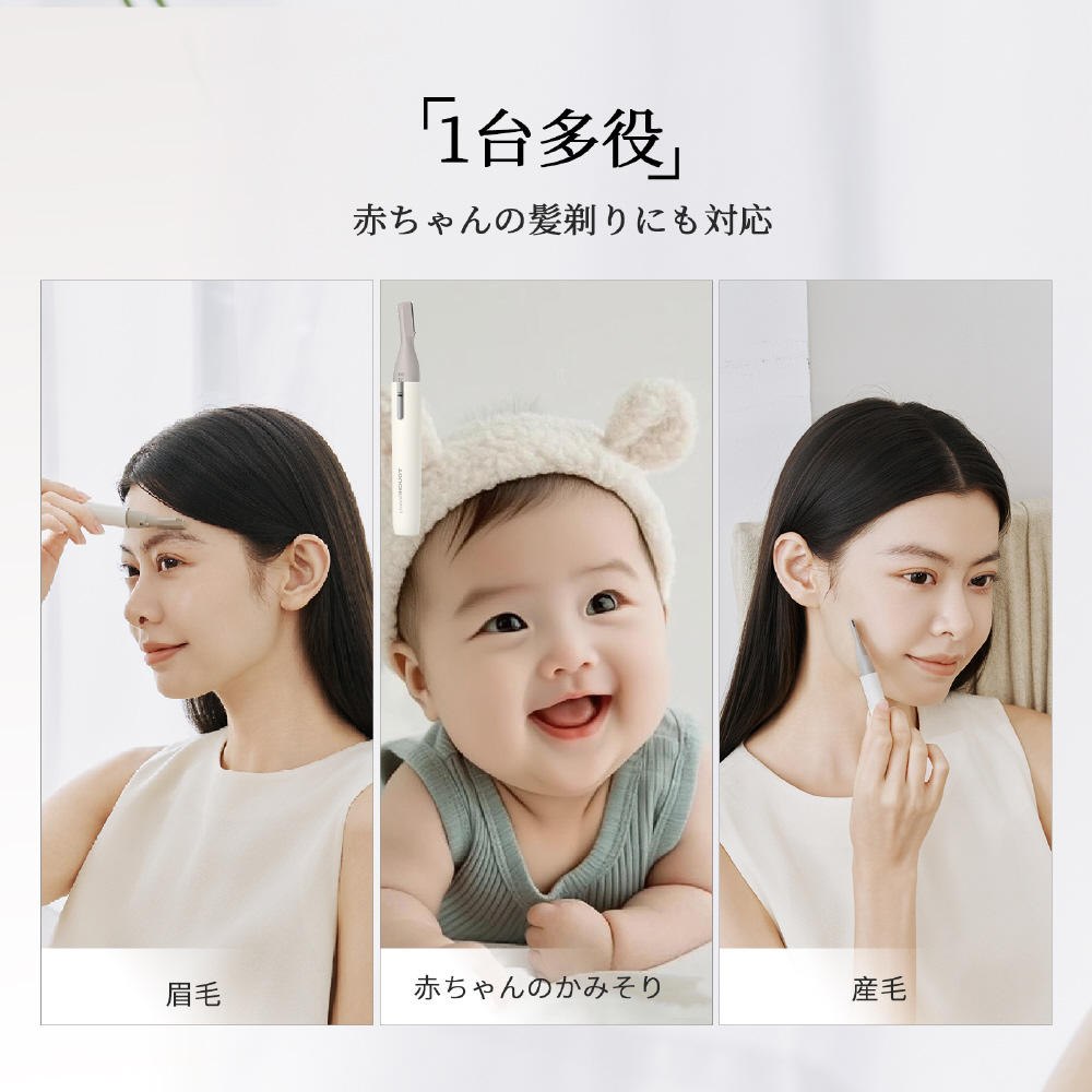 眉のお手入れ・頬の産毛・腕などの産毛まで、これ1台で幅広く対応。スリムタイプのため、ポーチに入れて出先でケアも可能です。