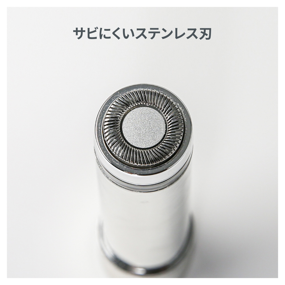 高精度研磨のステンレス刃を内蔵し、毛を根元からすっきり処理。毛流れに沿ったなめらかな動作で、ストレスフリーでご使用いただけます。