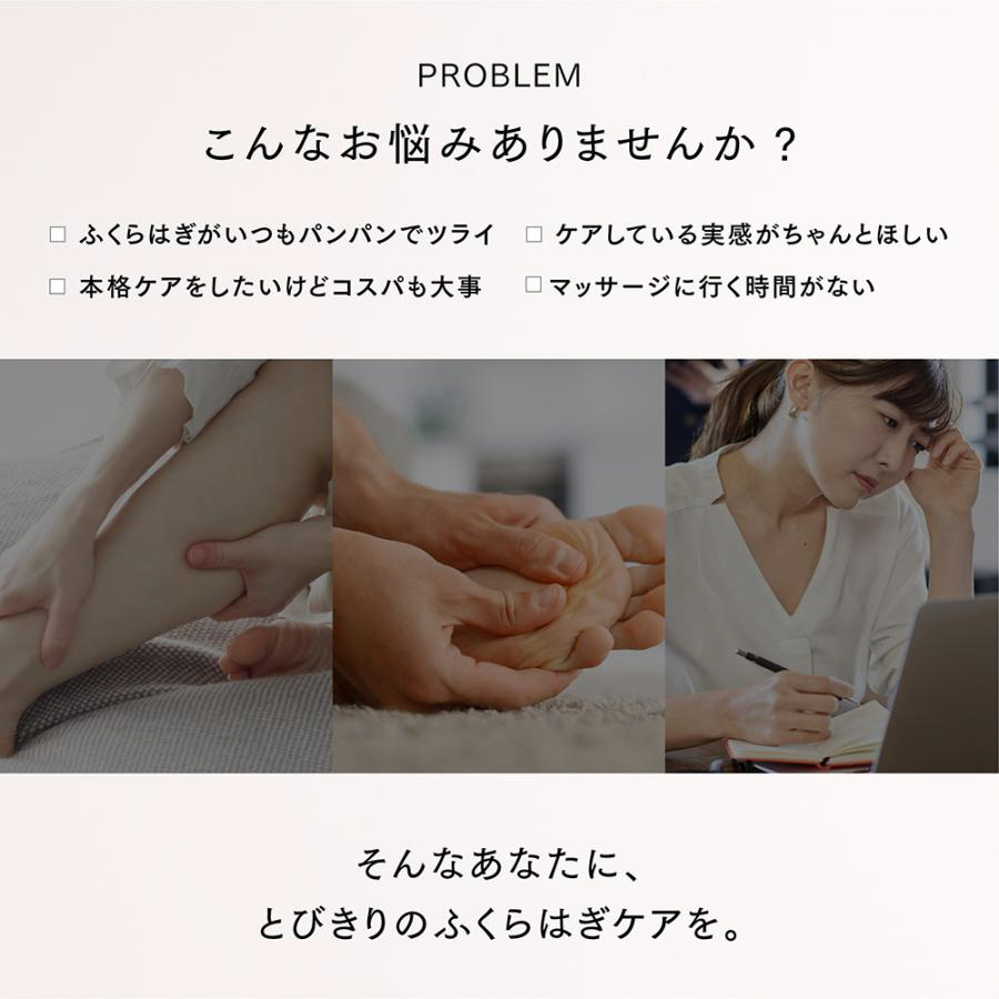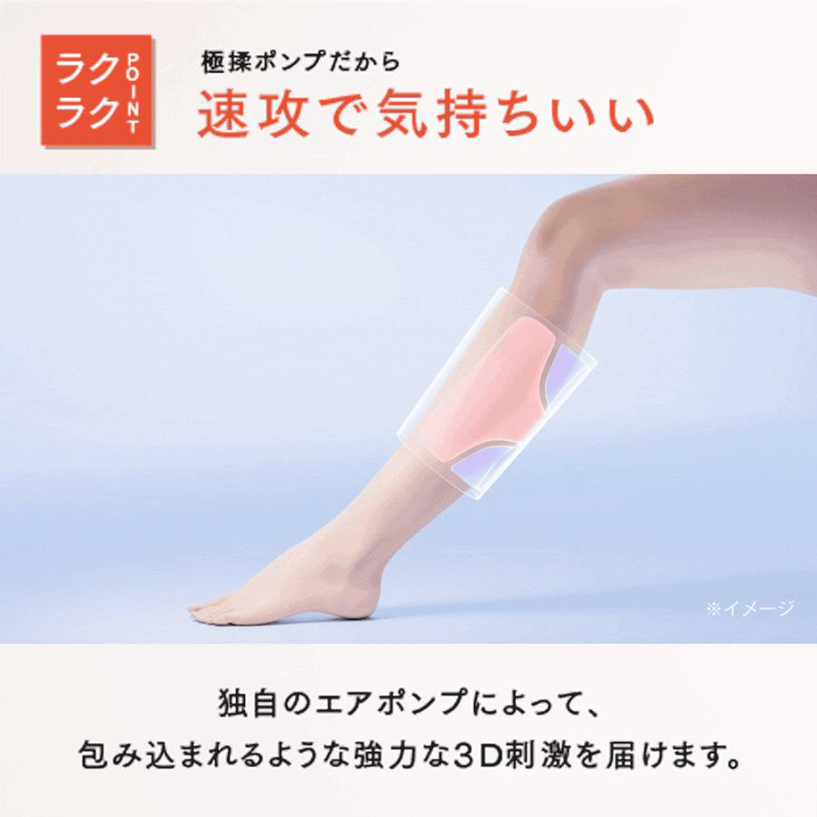 コンパクトなボディからは想像できないほどのパワフルさで、ふくらはぎを包み込むように刺激する高圧ふくらはぎケア