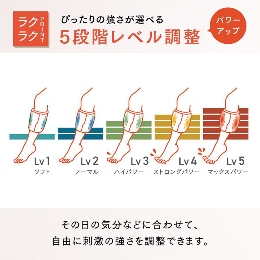 Lv1からLv5まで、その日の気分などに合わせて、自由に刺激の強さを調整できます。