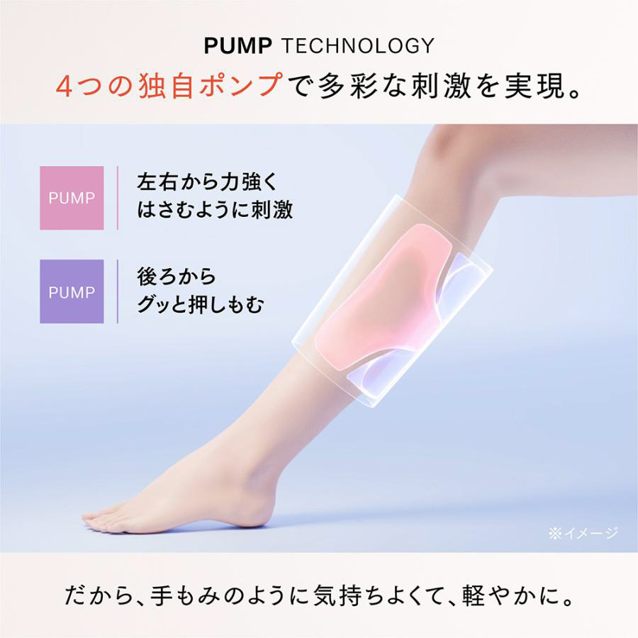 4つの独自ポンプで多彩な刺激を実現。だから、手もみのように気持ちよくて、軽やかに。