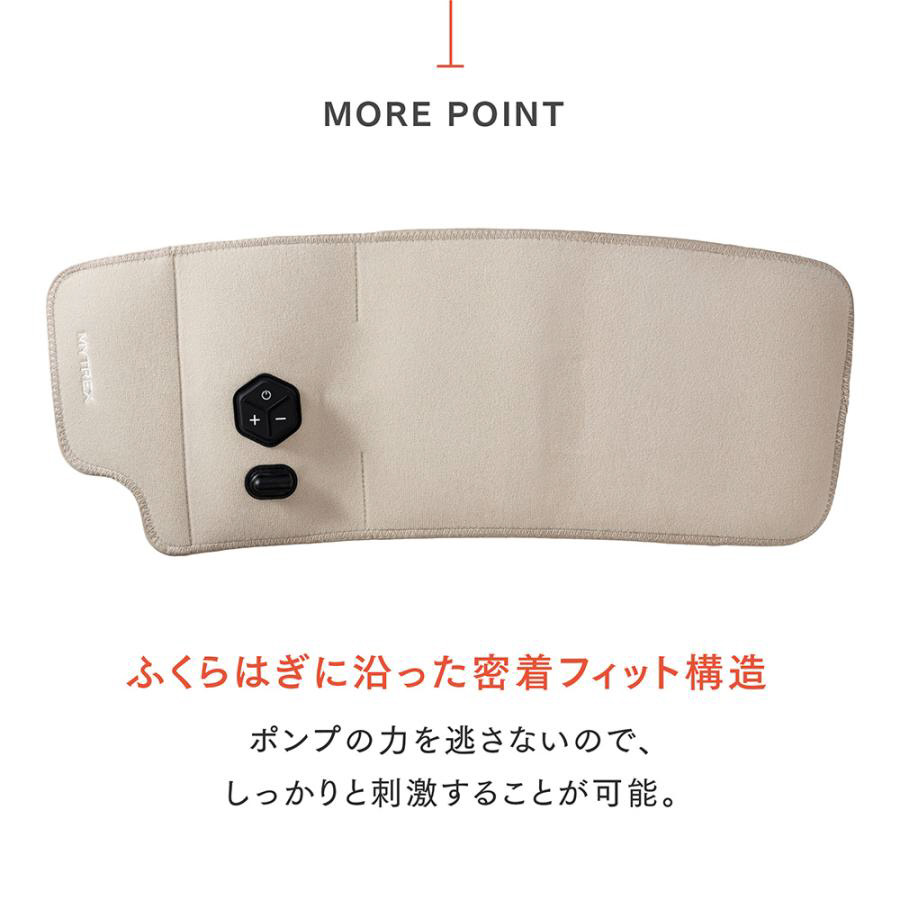 ふくらはぎに沿った密着フィット構造で、ポンプの力を逃さないので、しっかりと刺激することが可能。