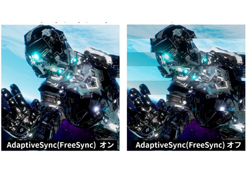 ■AdaptiveSync(FreeSync)に対応。画面のリフレッシュレートとコンテンツのフレームレートのズレから生じるティアリングを防ぎ、滑らかで美しい映像を実現します。