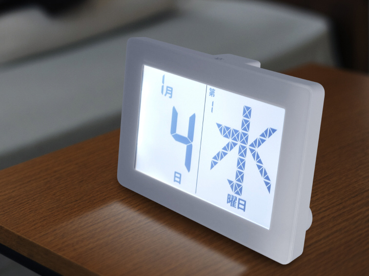 日付と曜日を大きく表示させることで見やすくしました。紙のようにめくる必要がないため、日付を間違える心配もありません。