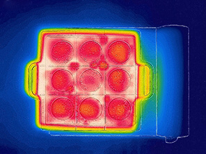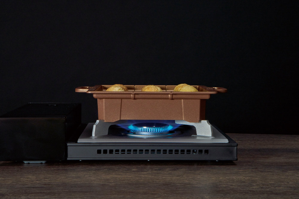 ■穴の深さ150%の新構造:返しやすい&こぼれない、丸く仕上がる。 焼きやすさを追求した革新的な設計として、各ホールは従来比150%の深さに。生地を8割まで注ぐだけで、返しやすく、ホール内で自然に生地が丸く焼けるため、従来のような記事を寄せ集める職人技はもう不要です。これまでの焼き方の常識を覆す、新しいたこ焼きスタイルを提案しています。