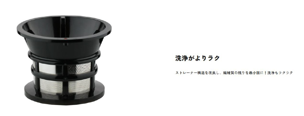 ストレーナー構造を改良し、繊維質の残りを最小限に!洗浄もラクラク