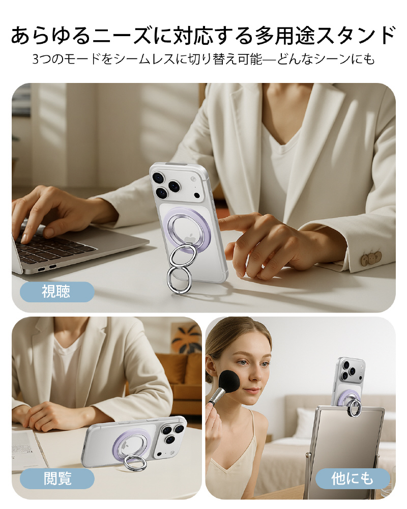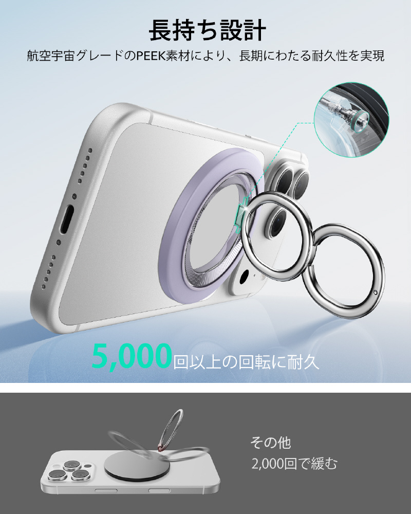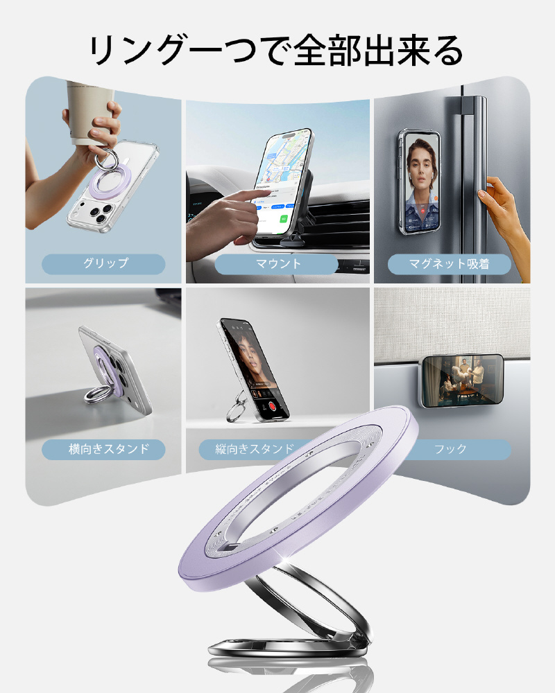 強力マグネットスマホリング MagSafe対応 360度回転 両面マグネット スマホスタンド ラベンダー 2K6180301 - Lavender