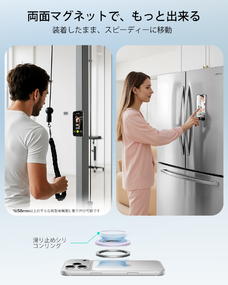 この電話リングホルダーは、両側に強力な磁石が付いており、磁気カーマウント、ジム機器などの鉄金属表面にすばやく取り付けられます。