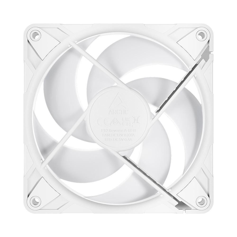 ワイドレンジ仕様のPWMファン。リバース回転モデル、P12 Pro Reverse A-RGB PST (White)。