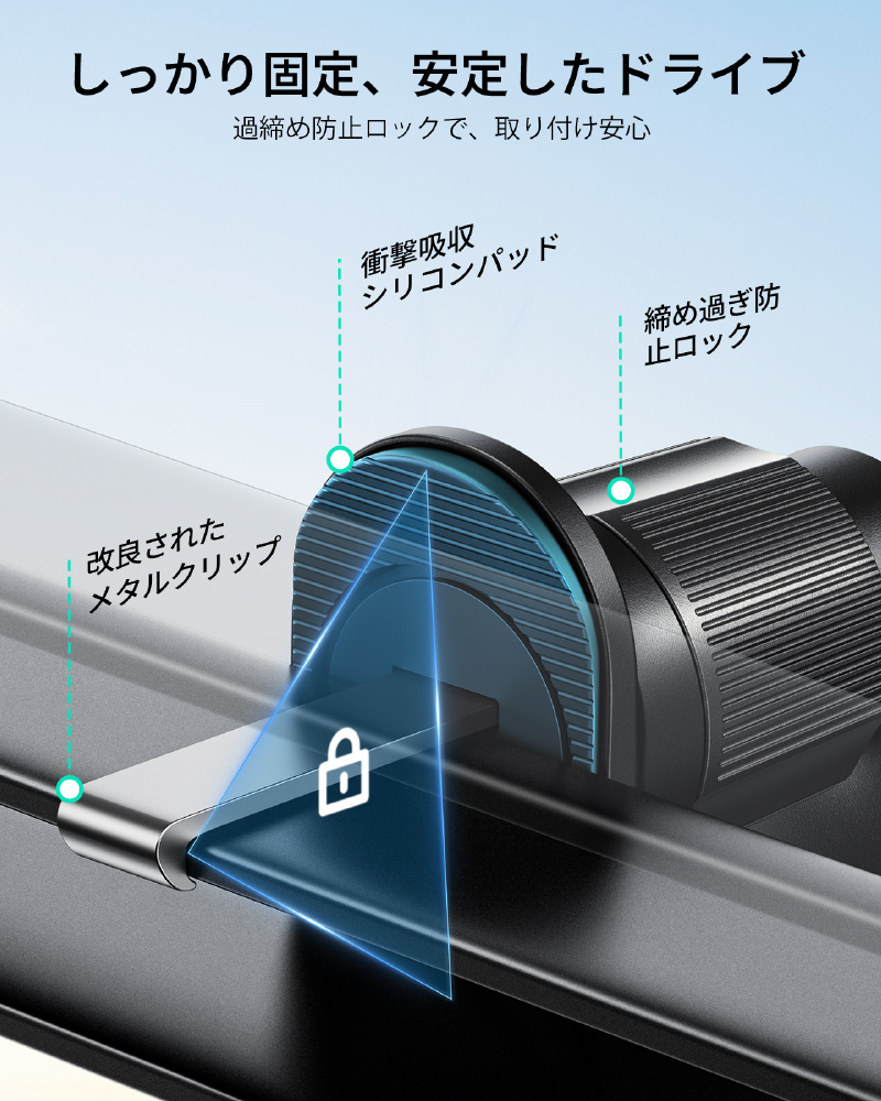 OmniLockシステムは、360°回転するアームとオムニローテーションジョイントにより、スマートフォンを最適な位置に固定できます。傾けたり、回転させたり、お好みに合わせて調整することで、ナビゲーションと通話の両方に最適な視野角を確保できます。煩わしい反射や視界の悪さにさよならです!