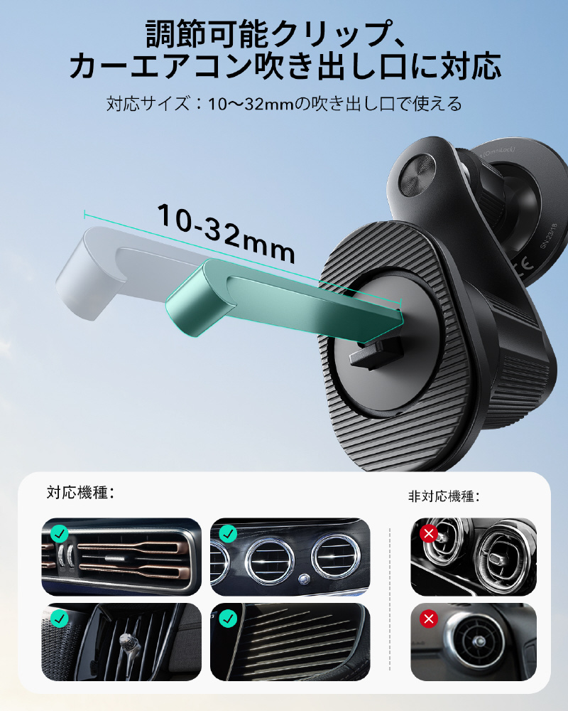 ESR OmniLockホルダーは、エアコンの吹き出し口に取り付けることで、空気の流れを完全に遮断し、車内の暖房やエアコンの効率的な作動を維持するように設計されています。革新的なロック機構により、ホルダーはしっかりと固定され、空気の流れを妨げません。