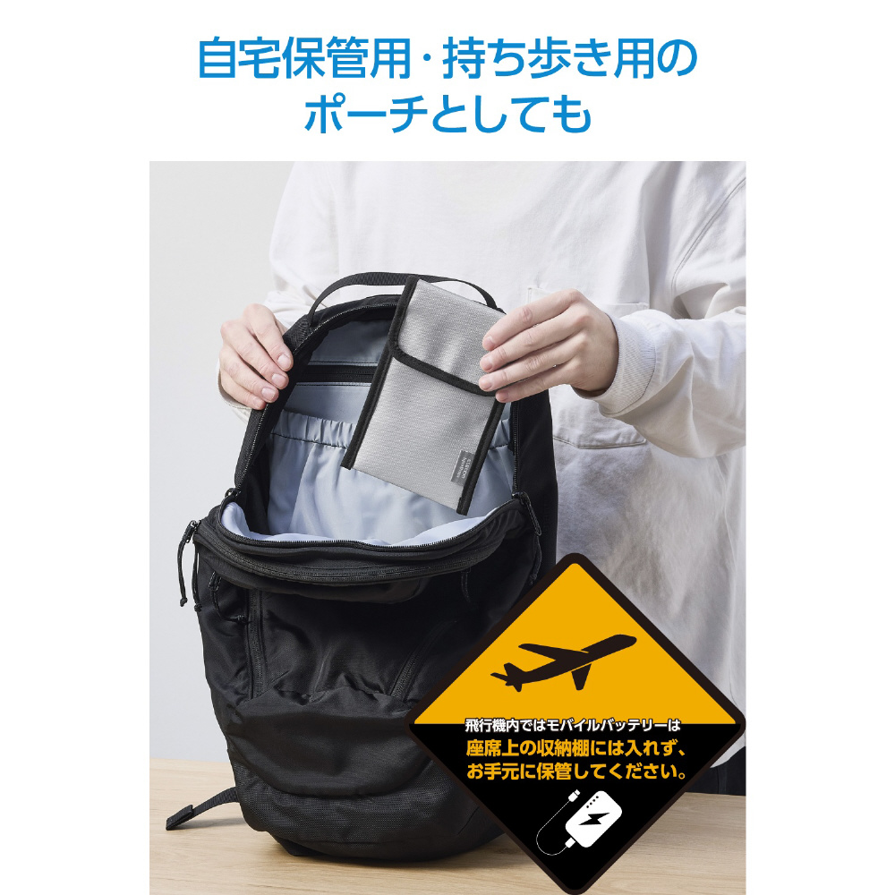 モバイルバッテリーなどのガジェット類が入るサイズで、持ち運びにも便利。飛行機内への持ち込みなどでバッグに入れるときも、すっきり収まります。