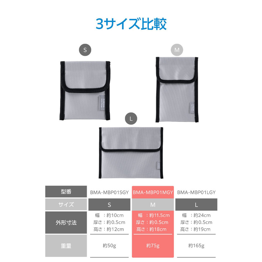 難燃ポーチ 折り込みタイプ ポケット付属 Mサイズ グレー BMA-MBP01MGY