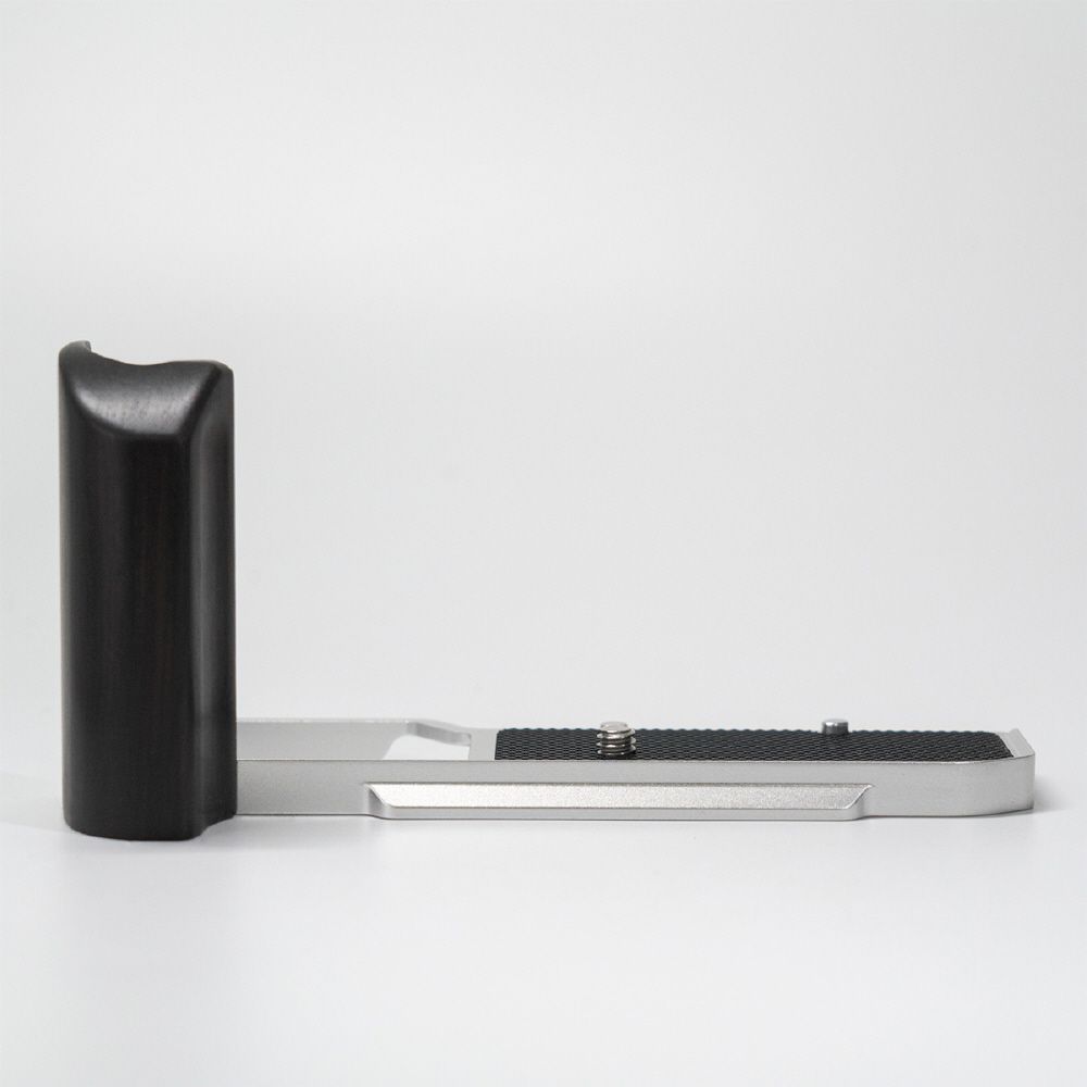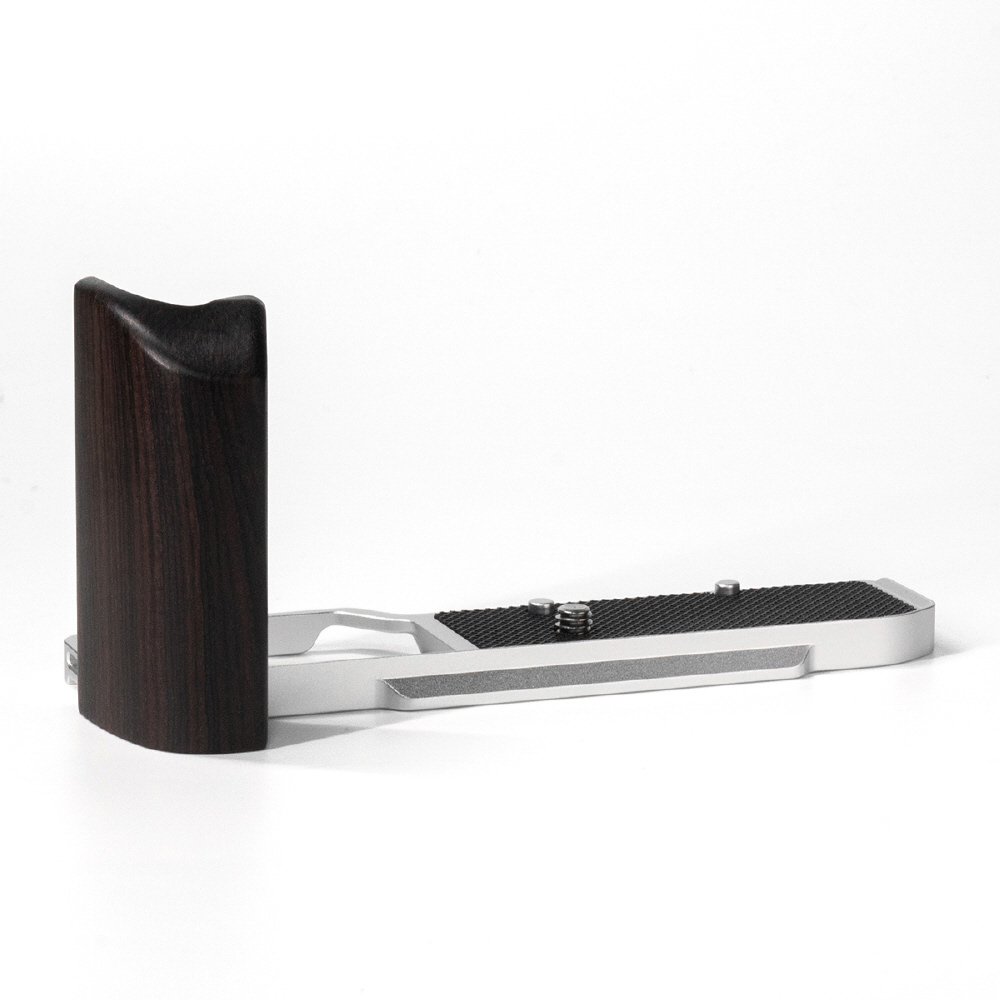 さらに、プレート部にはストラップホールを備え、縦位置・横位置のいずれの撮影スタイルにも柔軟に対応します。グリップ部には天然木を使用し、手に馴染みやすく、長時間の撮影でも快適なホールド感を提供。ホールド性を高めることで手ブレを抑え、安定した撮影をサポートします。使い込むほどに質感や光沢が深まり、天然素材ならではの経年変化をお楽しみいただけます。
