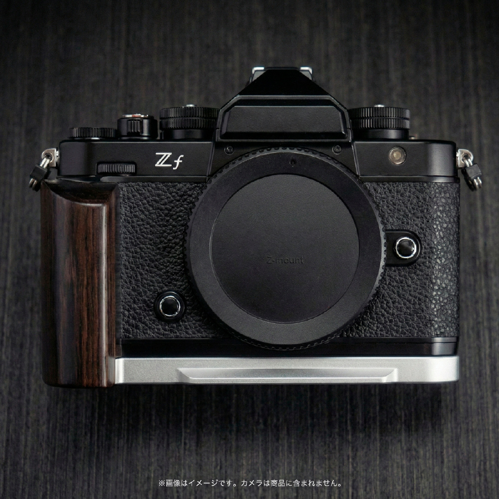 YUWOOD ウッドグリップ 一体型ベースプレート NIKON Z f 専用 アルカスイス互換(黒檀/シルバー)