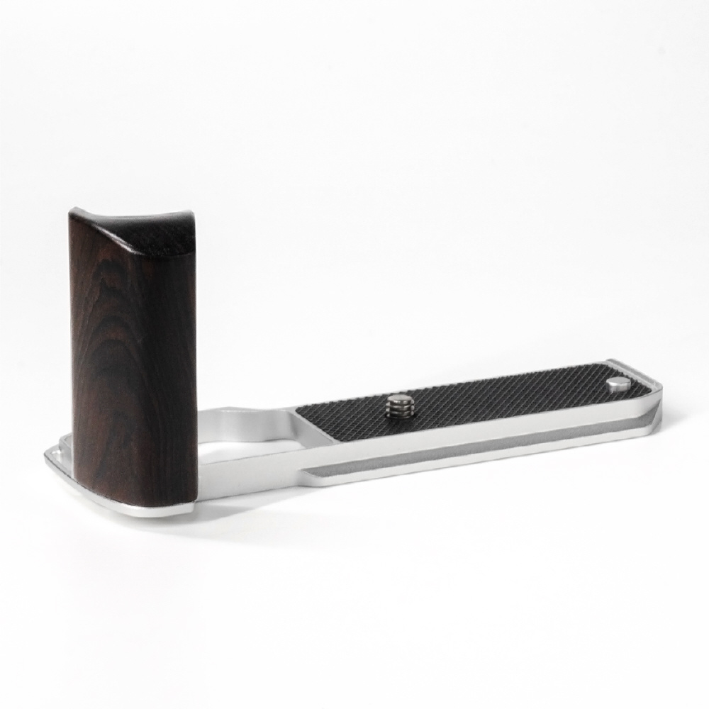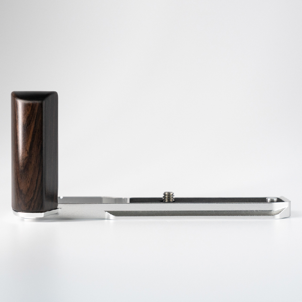 さらに、プレート部にはストラップホールを備え、縦位置・横位置のいずれの撮影スタイルにも柔軟に対応します。グリップ部には天然木を使用し、手に馴染みやすく、長時間の撮影でも快適なホールド感を提供。ホールド性を高めることで手ブレを抑え、安定した撮影をサポートします。使い込むほどに質感や光沢が深まり、天然素材ならではの経年変化をお楽しみいただけます。