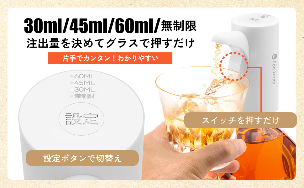 ■設定ボタンで4段階(15ml・30ml・45ml・無制限)の注出量を切り替え可能。安定した味を実現します。