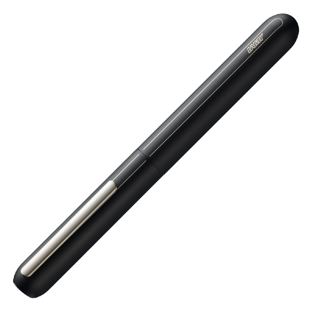 両端が丸みを帯びたボディに、クリップからの延長線上に伸びるラインとLAMYロゴが、レトロモダンな印象漂う個性派モデル。