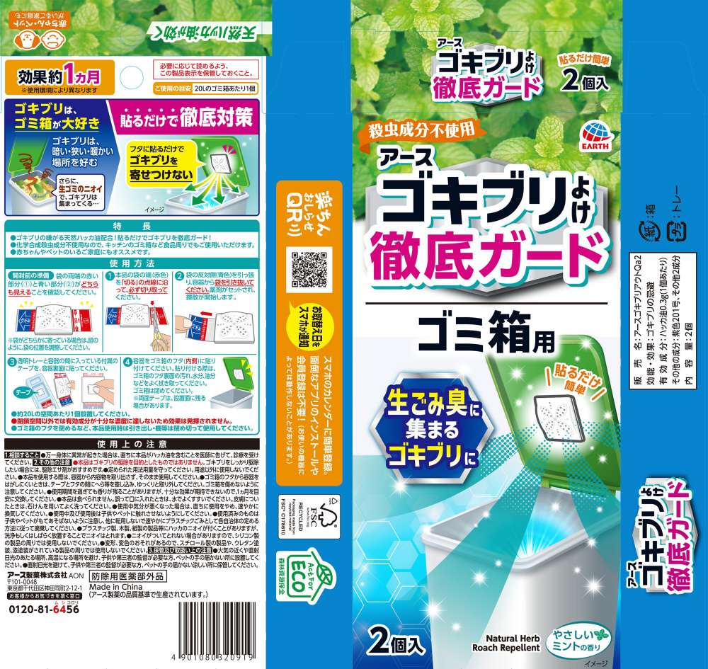 アースゴキブリよけ ゴミ箱用 2個入[防除用医薬部外品]