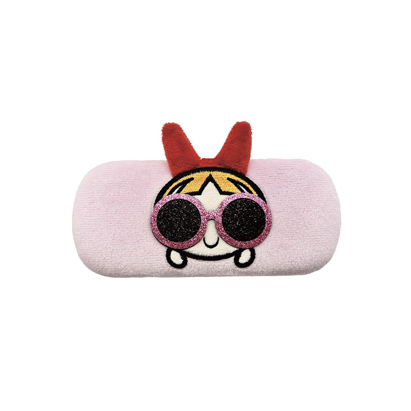パワーパフガールズのメガネケース&メガネ拭き〈BR〉ぬいぐるみ生地が可愛い、キラキラサングラスをかけたガールズたち!〈BR〉共通のメガネクロスには、3人のお部屋のアートが印刷されています。