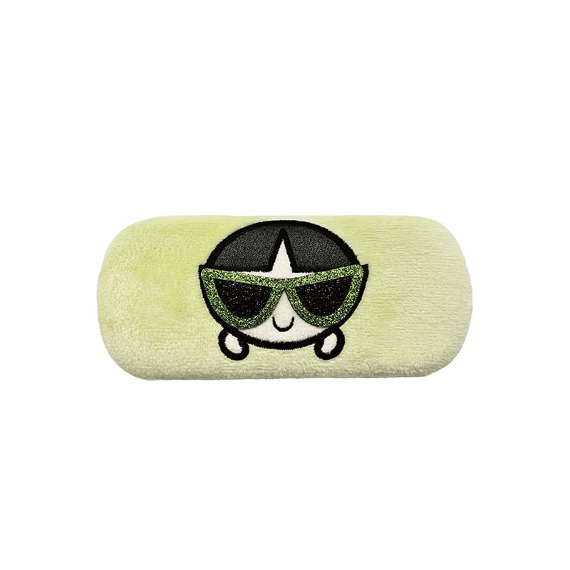 パワーパフガールズのメガネケース&メガネ拭き〈BR〉ぬいぐるみ生地が可愛い、キラキラサングラスをかけたガールズたち!〈BR〉共通のメガネクロスには、3人のお部屋のアートが印刷されています。