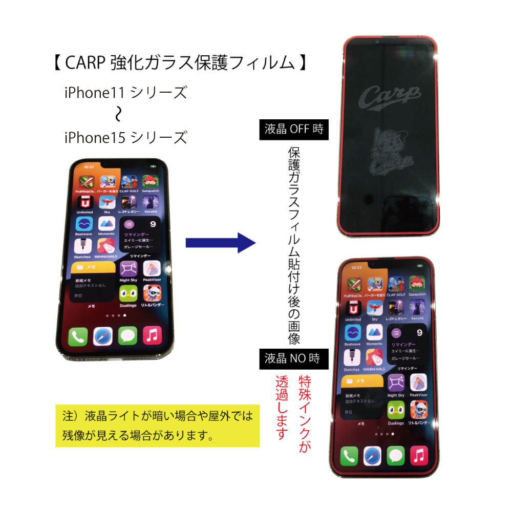 画面OFF時に「CARP」ロゴが現れる!0.33mm強化ガラスフィルムです。