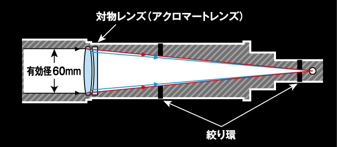 ・対物レンズ:有効径 60mm、焦点距離 420mm