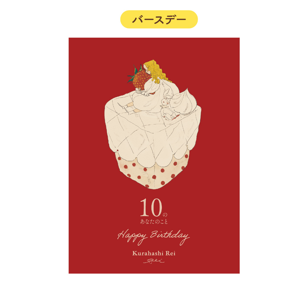 真っ赤な背景のケーキのアートを表紙に使用した、お誕生日のお祝いにぴったりな、とても可愛いデザインです。