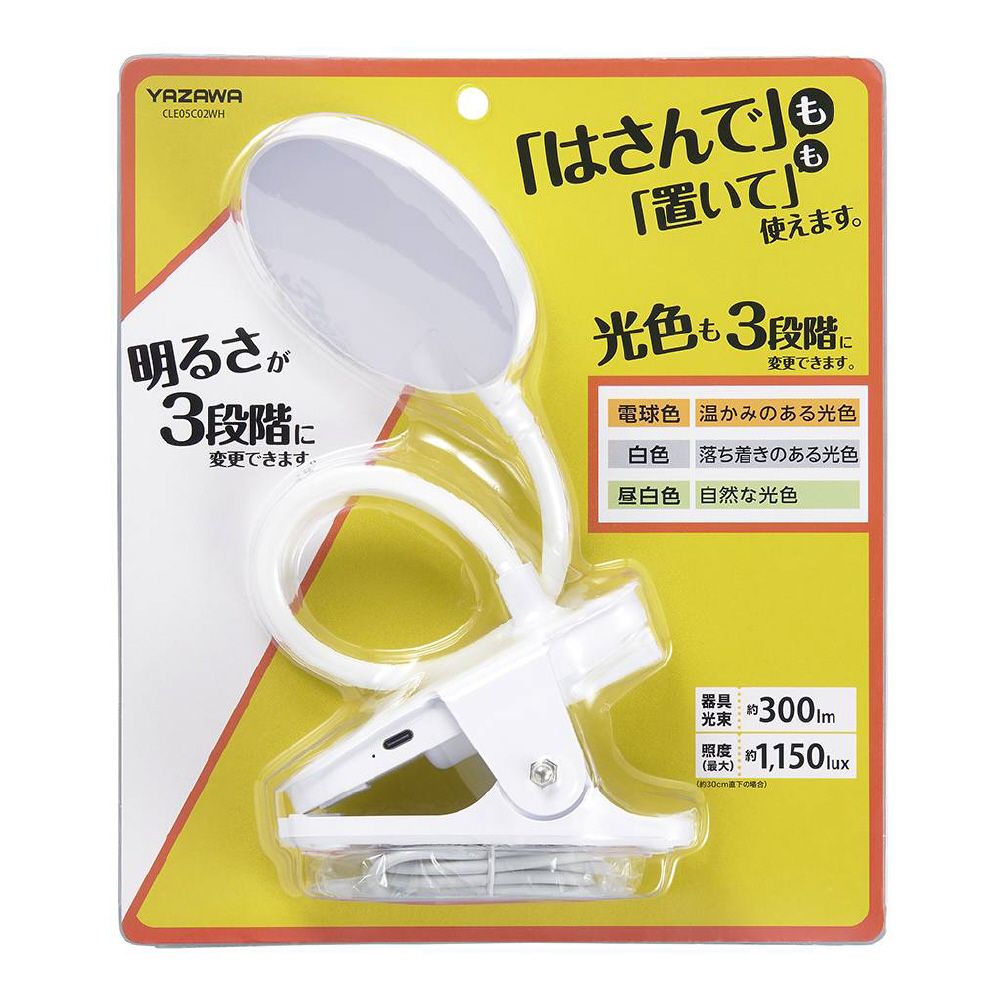 LEDクリップライト調光調色機能付き ホワイト 3 段階調光・3段階調色(電球色〜白色〜昼白色)、USB電源、TypeCコード付属 [LED]