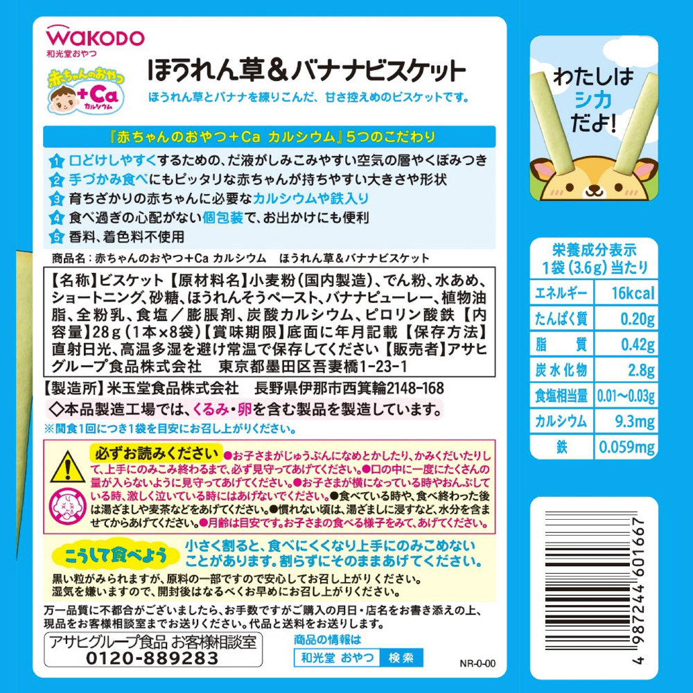 【軽減税商品】赤ちゃんのおやつ+Ca カルシウム ほうれん草&バナナビスケット 28g 赤ちゃんのおやつ